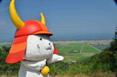 ひこにゃんが、田んぼを眺める後ろ姿が、なんともかわいらしい!といいますか・・・。かぶとのすそが風でなびいてるような感じがなんとも趣がある!!といいますか・・・。