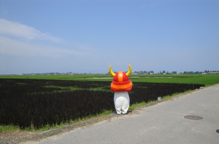 さて、今回も小ネタを一つ、「ひこにゃん」が「ひこにゃん田んぼアート」を見学した様子をお伝えしたいと思います。