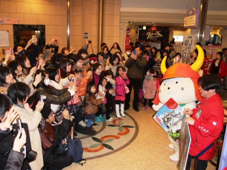 平日の出陣となりましたが、たくさんのお客さまにお越しいただき、「ひこにゃん」も大喜びでした。皆さま、寒い中ありがとうございます。