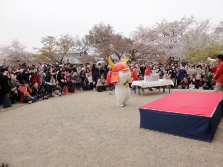 さて、桜の季節と言えば、別れの季節でもあります。観光振興課でも、4月の人事異動により、今まで「ひこにゃん」が大変お世話になった方々とお別れすることとなりました。お別れはやはり寂しいものですが、職場は変わっても、これからも「ひこにゃん」が結んでくれた縁を大切にしていきたいと思います。