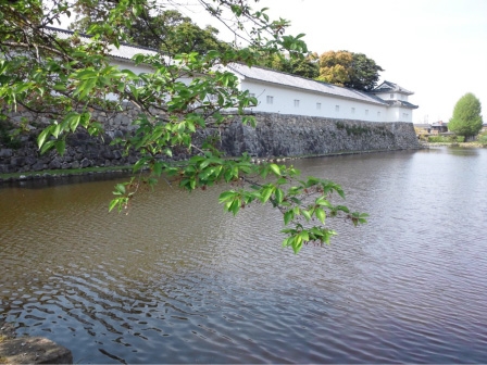 「ひこにゃん」のお誕生日の頃は、満開のピンクの花が咲き誇っていた桜の木も、今はこんなに青々とした新しい若葉に彩られてきました。(気候もポカポカ暖かくて気持ちがいいです。新緑の彦根城もいいものですね。)