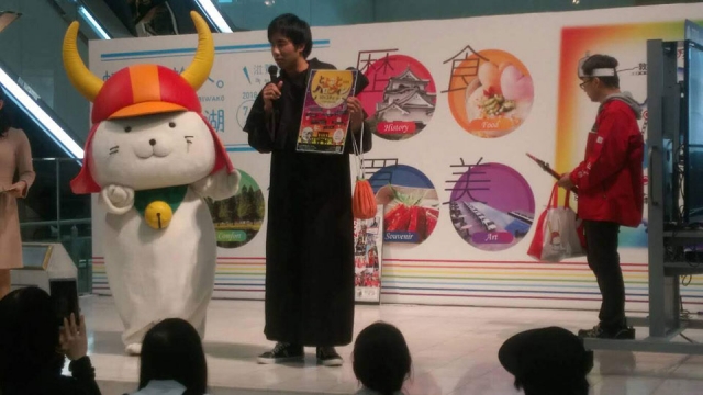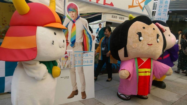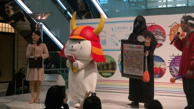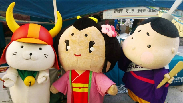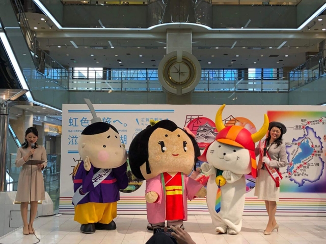 滋賀県より一緒に来ていた「お江ちゃん」「おおつ光ルくん」とパシャリ。今回は他のキャラさんはおらず、この3キャラだけの登場となりました。これなかったみんなの分まで滋賀県のPRがんばろー