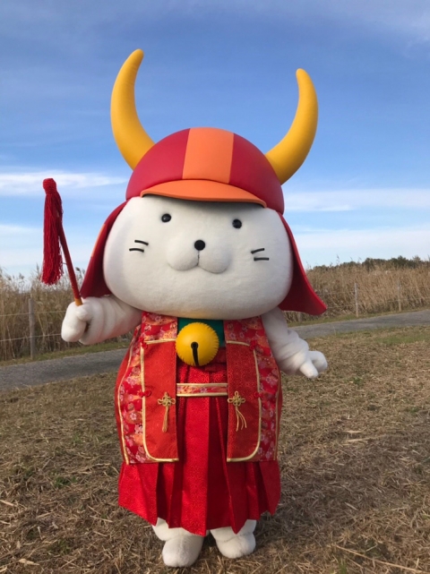 お客様だと背中に生えるようにお写真が上手く撮れるのだと思うのですが、残念ながらひこにゃんは兜から生えてるように見えます・・・・。