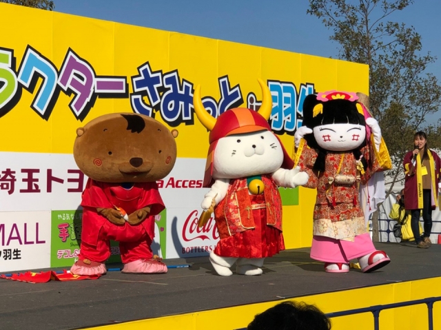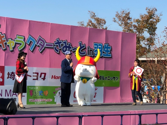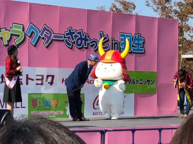 ひこにゃん1人のPRステージでは羽生市長がプレゼントを持って遊びに来て下さいました(*゚∀゚*)