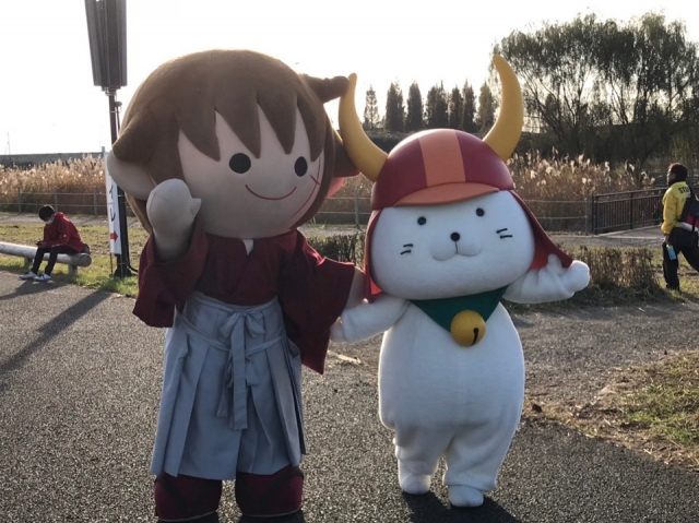 そしてビバッチェくんは足軽の衣装、やちにゃんは市女笠のお姫様です!素敵な3ショットです。