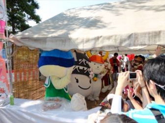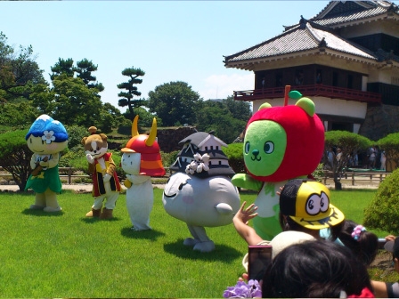 「国宝四城ブース」内にて、PRをするゆるキャラたちです。たくさんの方たちにアピールできたようですね。