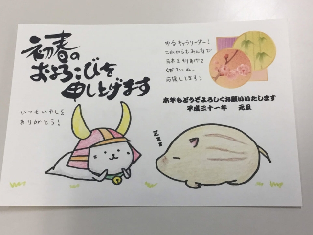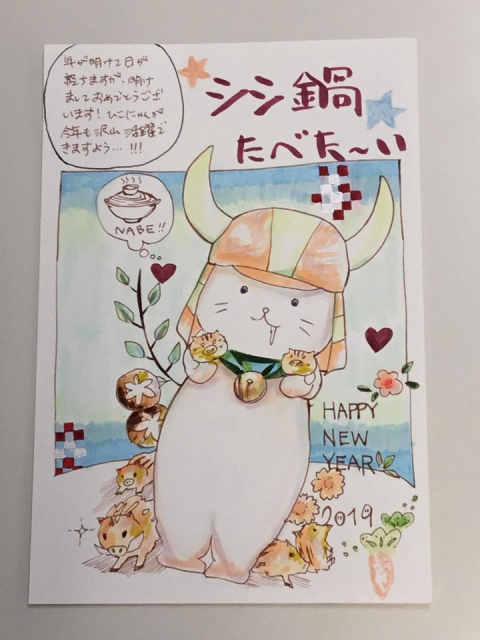 また、今年はイノシシ年ということで、イノシシとコラボしたイラストもたくさんありましたー。