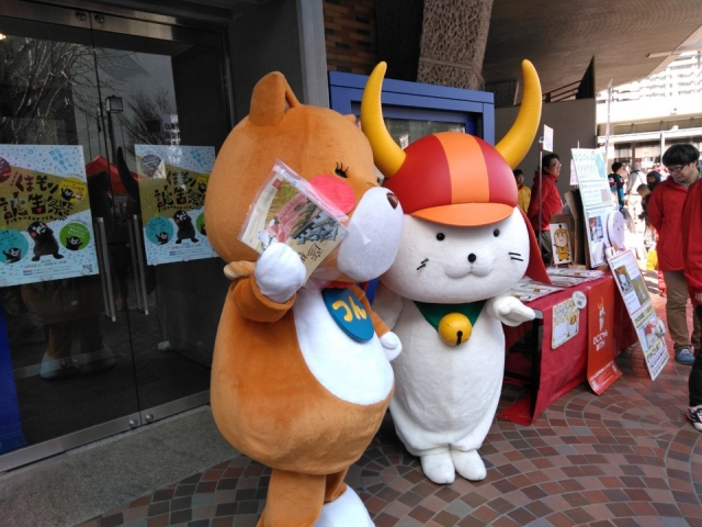くまモンのお誕生日をお祝いするとともに会場にあるひこにゃんのブースにてみなさんにひこにゃんファンクラブのお知らせや彦根の観光パンフレットをお配りいたしました!