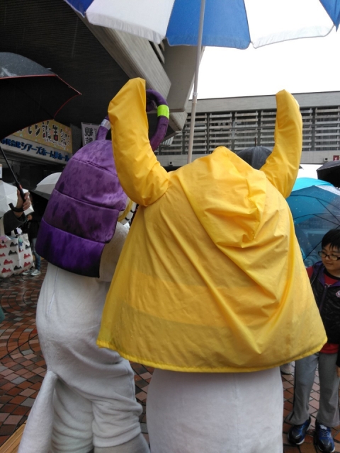 ひこにゃんの合羽姿も様になります。これで雨の時も安心でしょうね。