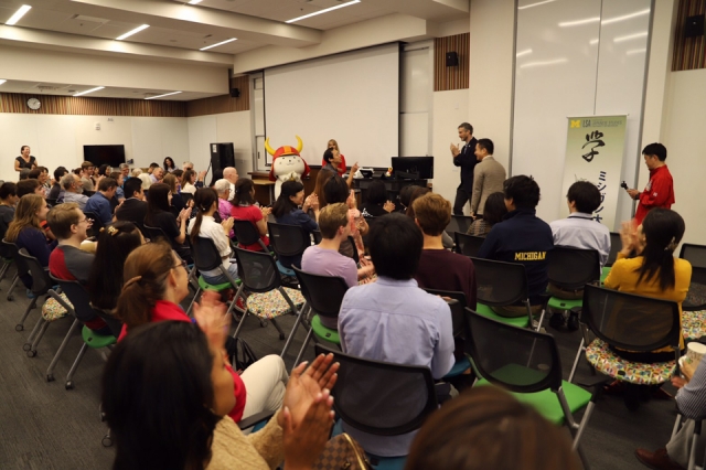 この日は名門・ミシガン大学での公開講座にも登場したひこにゃん。