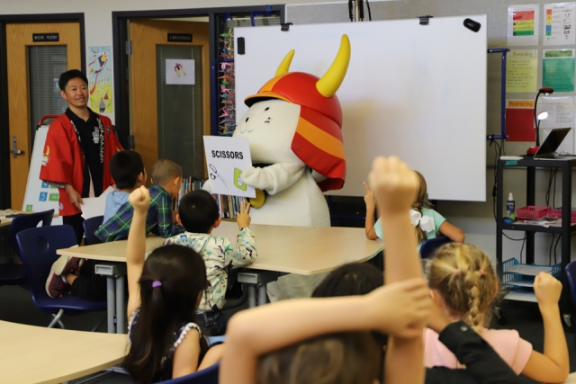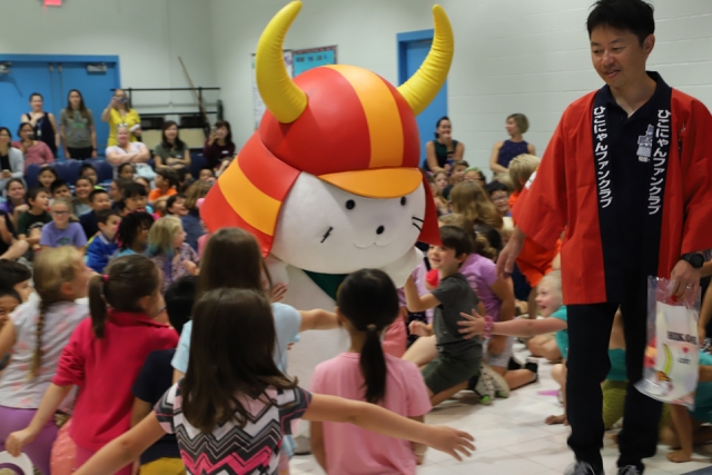 ひこにゃんのアナーバー滞在2日目は、アナーバーにある3つの学校へ出陣しました。