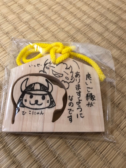 「いっせー」から縁結神社の絵馬をひこにゃんにプレゼントしていただきましたよ。