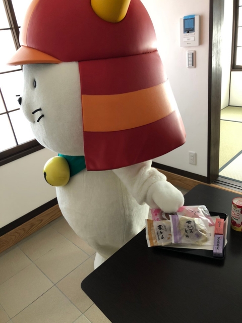 参列までに時間があるので、ひこにゃんは控室でおやつタイム!