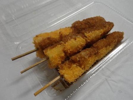 こちらは、佐野名物の「いもフライ」。さのまるが刀の代わりに腰にぶら下げていますが、素朴な味がとってもおいしかったです。屋台のお父さん、ありがとう~!