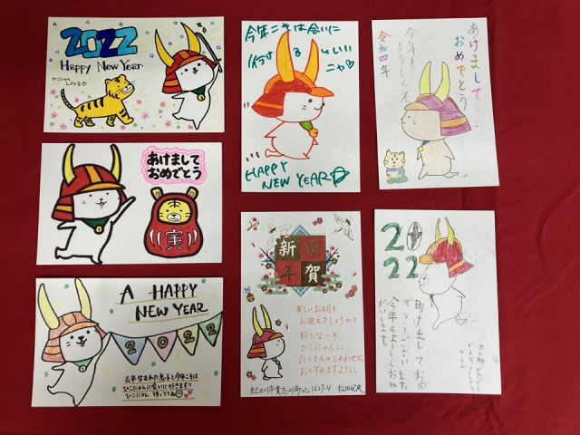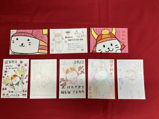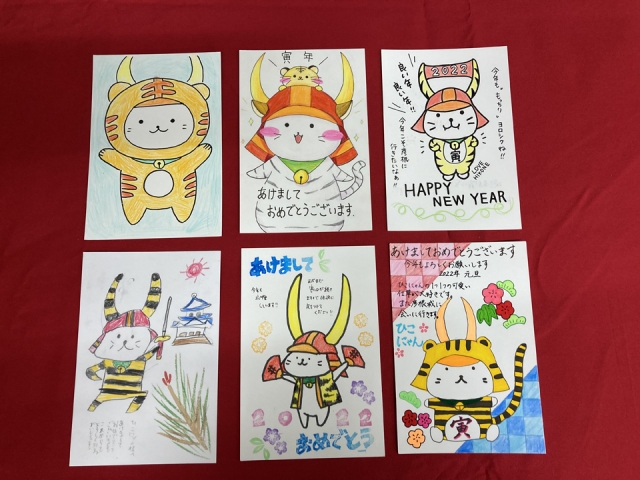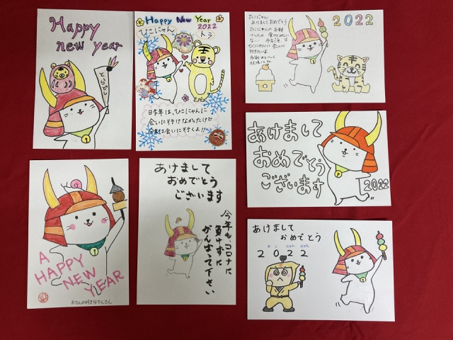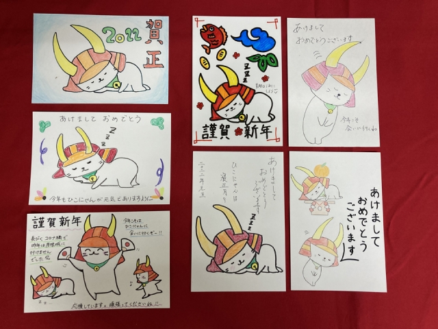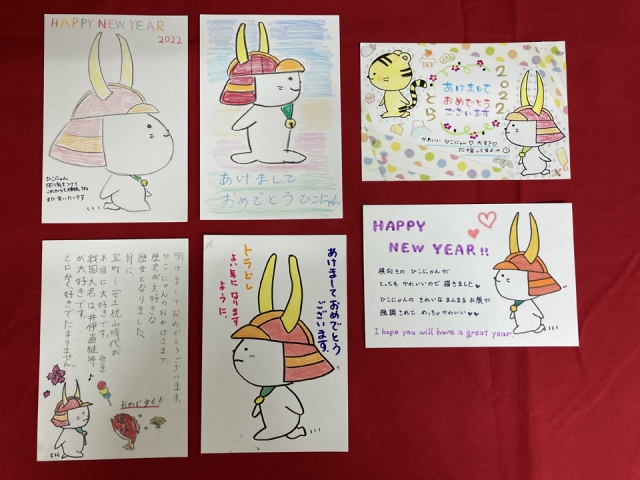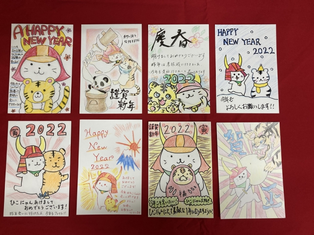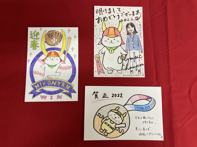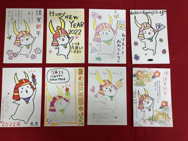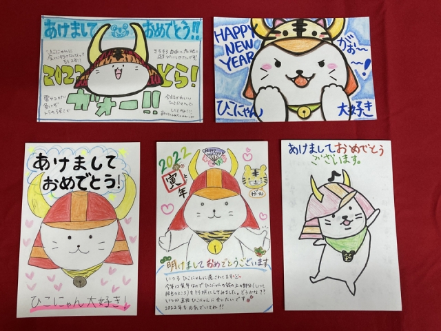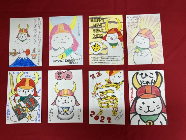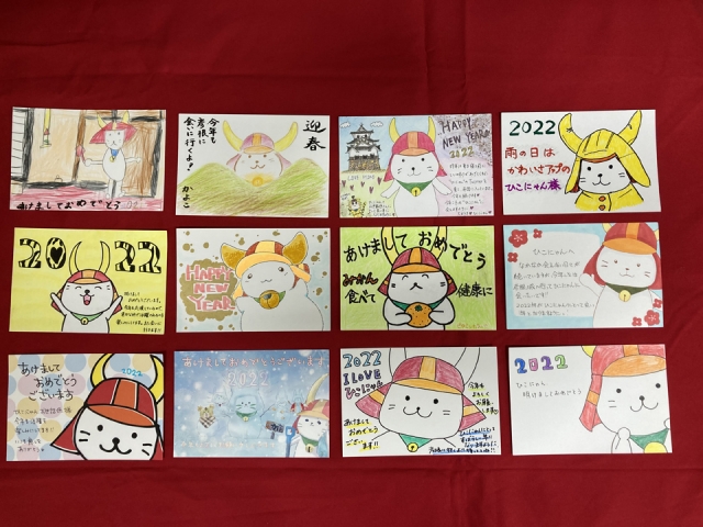 今年度は、「ひこにゃん」の新イラストを発表したこともあって、さっそく年賀状に描いていただいたものも多かったです。ありがとうございます。