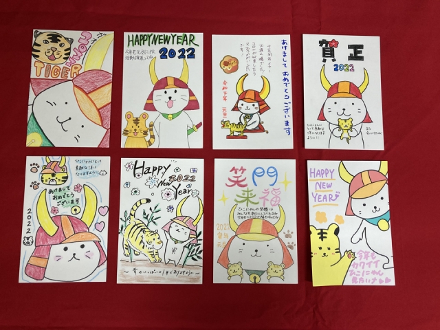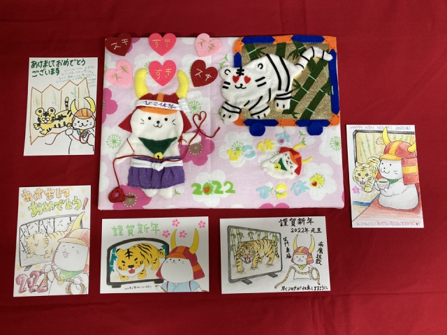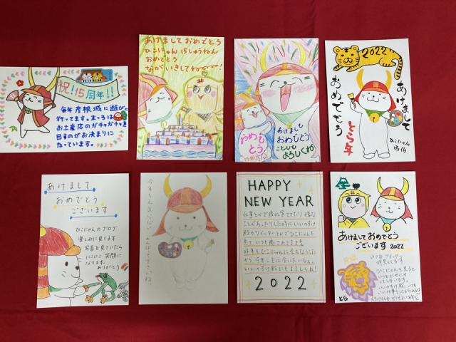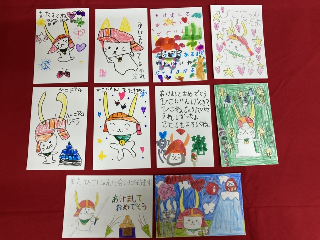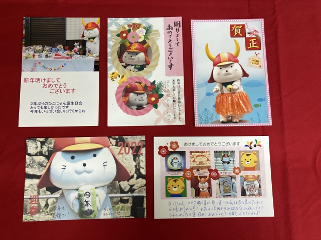 高校生のころから10年以上ずっと「ひこにゃん」を応援してくださっているという方や、家族3世代で年賀状を出していただいている方、ご兄弟で出してくださったり、幼稚園・保育園・小学校の友達同士で年賀状を送ってくださっている方も拝見しました。