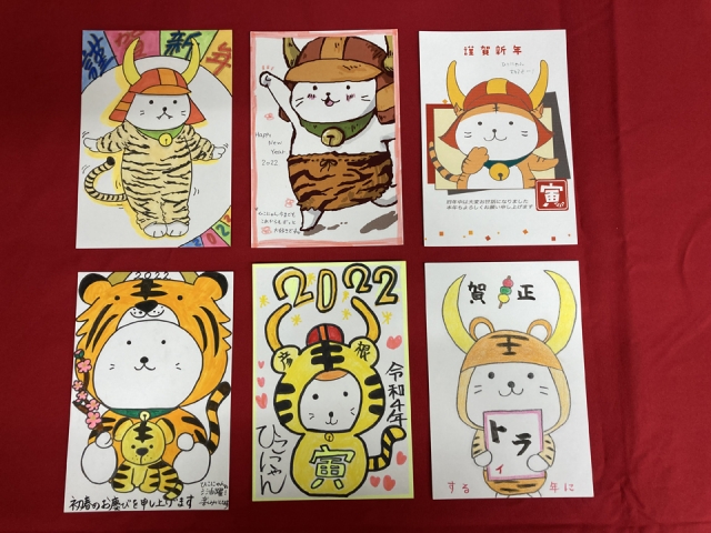 こちらは、今年の干支「とら」さんと一緒に描いていただいています。
