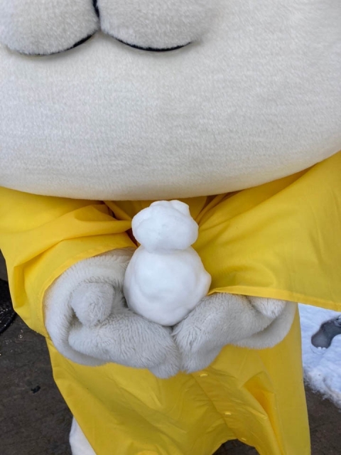 真っ白な雪景色に黄色いカッパ姿のひこにゃんが眩しすぎる❣️