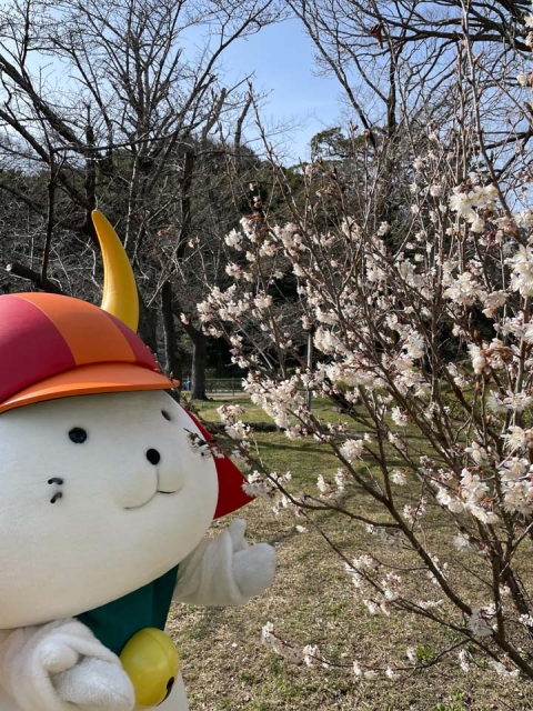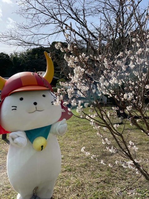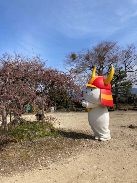 梅や桜の木に「もしもし、春が来ましたよ」と話しかけるひこにゃん、かわいいですね。