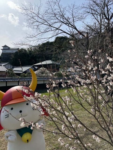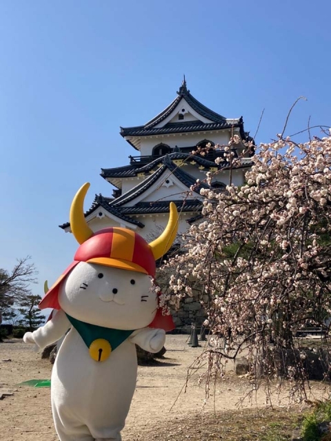 天守と梅とひこにゃん。お散歩の度に、つい何度も写真を撮ってしまうお世話係です。
