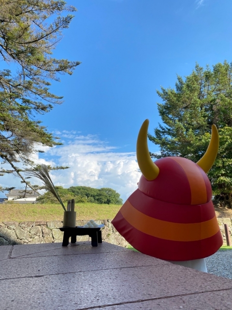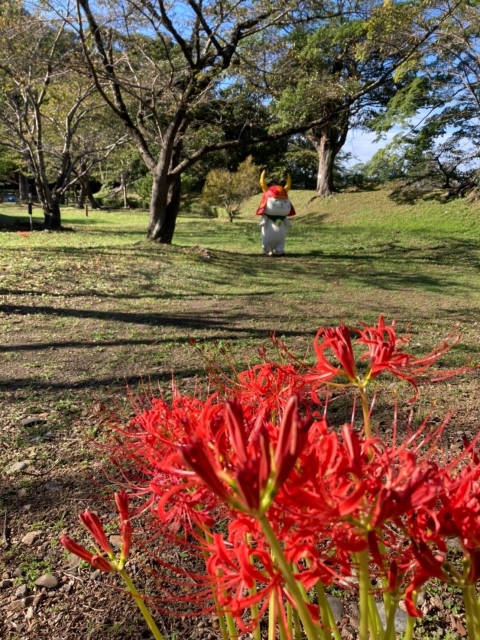 秋空にも、ひこにゃんの赤い兜が映えますね?