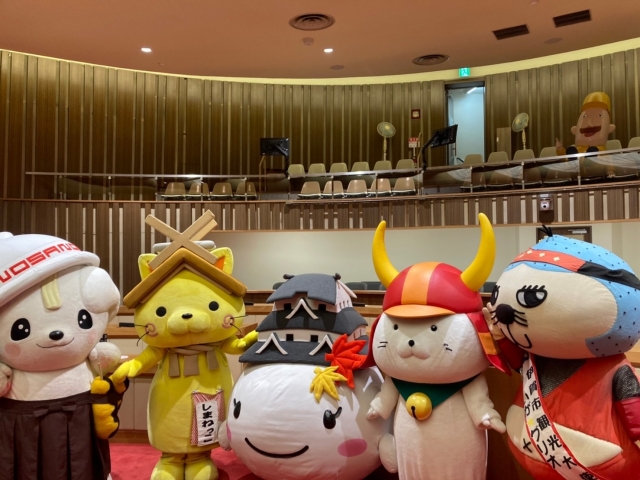 今回のブログでは、配信されていない部分…ひこにゃんと、久しぶりに会えたキャラさん達とのお写真をご覧いただきたいと思います。