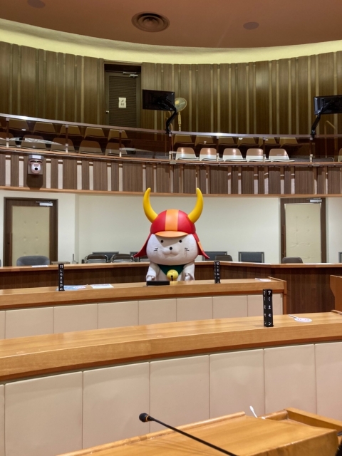 議長席に座っているひこにゃんは、凛々しくてカッコ良いです✨