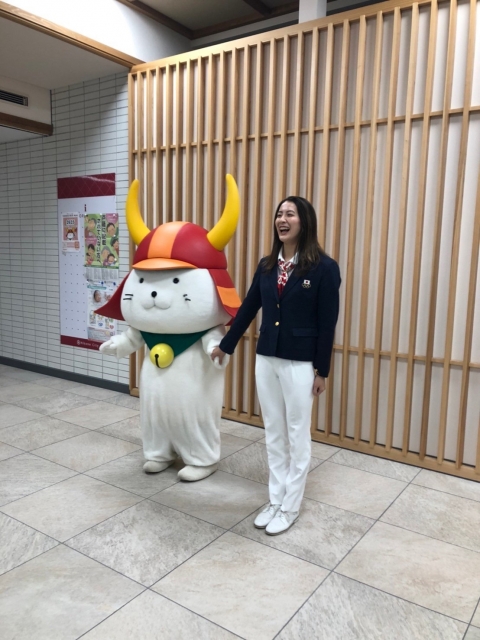 大橋悠依さんとひこにゃんが手をつないで、とても嬉しそうにしているのが、とっても和みます。