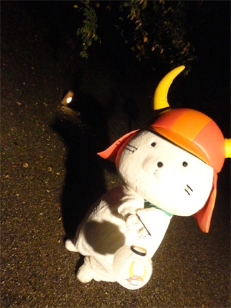 ライトアップの最中の一枚なのですが、なんだか、UFOにでも遭遇してしまったかのような雰囲気を感じませんか?「ひこにゃん」、宇宙人に連れて行かれないでね!