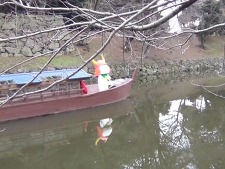水面にうつる「ひこにゃん」がとてもきれいでしたよ。