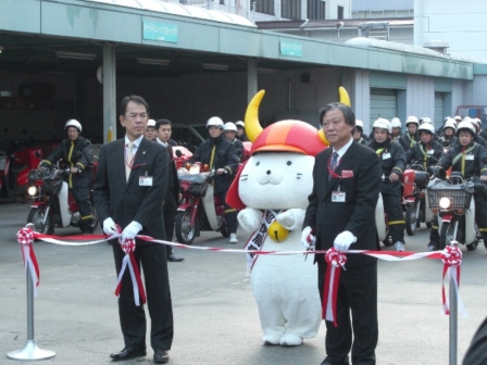 配達員の皆さんの安全を祈念して、テープカット式が執り行われました。