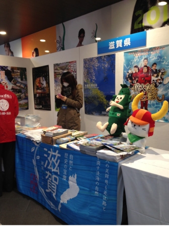 滋賀県のブースでは野洲市のどうたくくんとひこにゃんの人形がお迎えです。