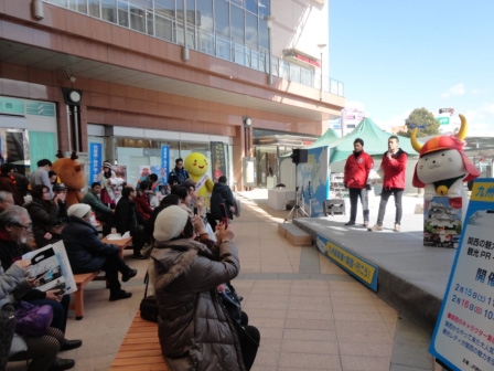 キャンペーン自体は2月14日(金)が熊本、2月15日(土)・16日(日)が鹿児島でした。ひこにゃんは15日の鹿児島からの参加となりました!