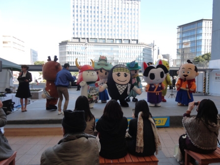 まずは熊本の様子をご覧ください。熊本市のパルコ前に滋賀県や関西地域のキャラクターが集合しました。