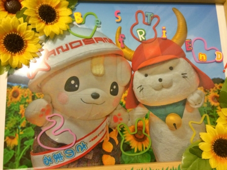 「ひこにゃん」とお世話係一同で一生懸命つくった、ひこにゃん&さのまるくんの写真立てのプレゼントです。