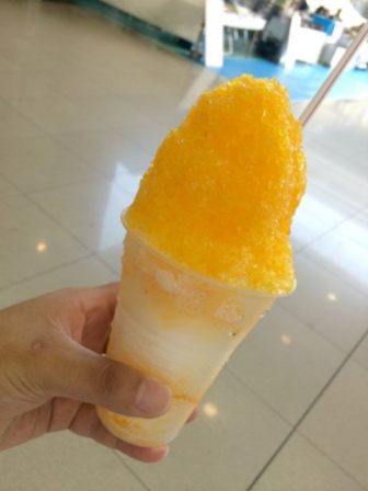 関空夏まつりといえば、たくさんのブース。就航地や関西圏内の美味しいものがたくさん並びます。お写真は、巷で話題の(?)白いとうもろこし「ピュアホワイト」(北海道ブース)とちゃんと果実の味がして美味しい「マンゴーかき氷」(宮崎ブース)です。