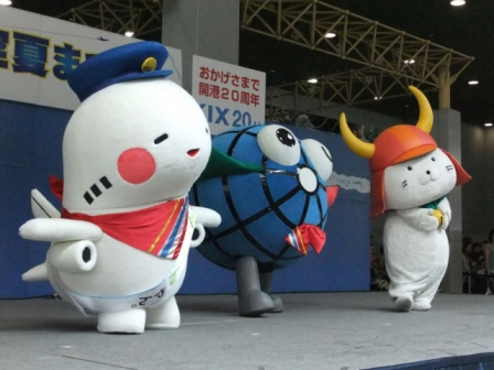 ステージには、関空のキャラクター「カンクン」と伊丹空港のキャラクター「そらやん」も遊びに来てくれました。7年連続参加のお礼を言いに来てくれたんですって~。関空は今年で開港20周年、伊丹開港も開港75周年ということです。本当におめでとうございます。