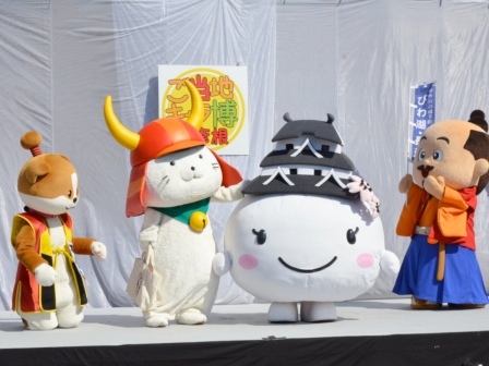 彦根キャラさんだけでなく、佐野市のさのまるくん、倉吉市のくらすけくん、敦賀市のよっしー、そして高松市のことちゃんにご参加いただきました☆