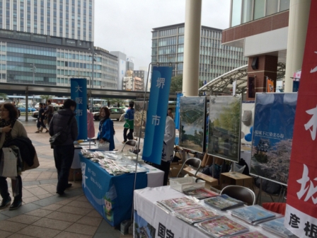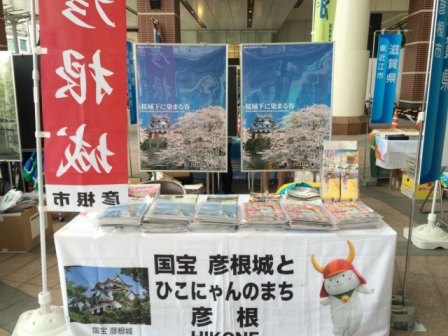 こんなに立派な彦根市ブースを設けていただきましたので、「ひこにゃん」はステージでPRを、お世話係はブースでパンフレット配りを一生懸命頑張りましたよ!