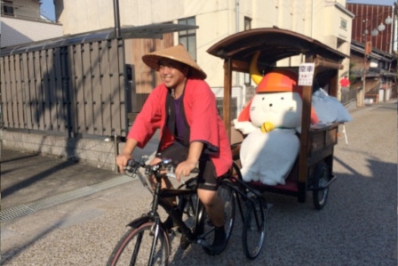 「ひこにゃん」も自転車タクシーに乗せてもらい颯爽と登場です☆