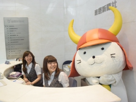 最後に、産経新聞本社で受付のお姉さんに転職したひこにゃんです!