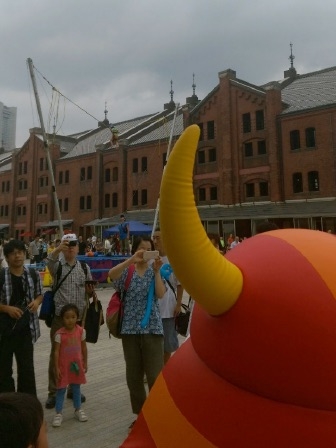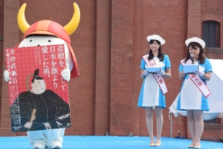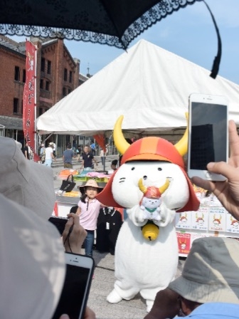 この「コリアングルメフェスタ2015」は現在彦根市で開催している「井伊直弼公生誕200年祭」の関係都市交流事業とコラボする形で横浜赤レンガ倉庫で開催されました。彦根市からは「井伊直弼公生誕200年祭」をPRする為、ひこねお城大使や観光協会そして「ひこにゃん」が参加しました。「ひこにゃん」にとって久々の横浜赤レンガ倉庫です。海に面しているおかげで気持ちいい風が吹いていました。
