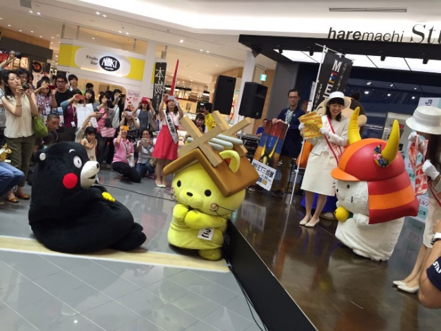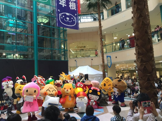 岡山駅すぐのショッピングモール内の特設ステージにて、滋賀県内のキャラさんや観光大使のお姉さん達と一緒にPRを行いました☆