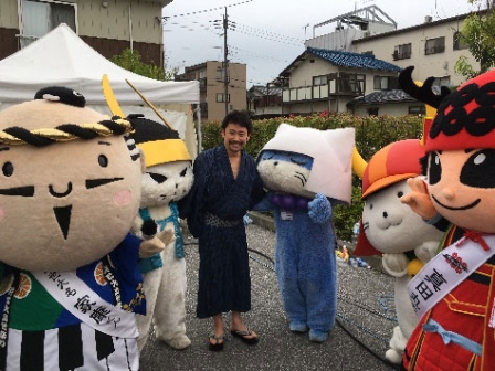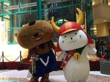 また、彦根市ステージでは、大河ドラマ「真田丸」とゆかりの深い長野県上田市の「真田幸丸くん」や石田三成にゆかりのある彦根市花しょうぶ通り商店街のキャラクター「いしだみつにゃん」、「おおたににゃんぶ」がかけつけてくれて、みんなで仲良くPRを行いました♪