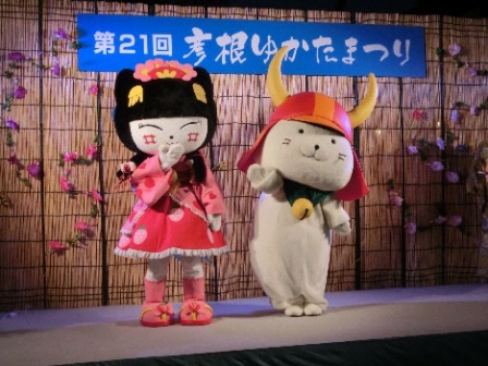 この日の夜は、「彦根ゆかたまつり」のステージにも「ひこにゃん」がお邪魔しました。