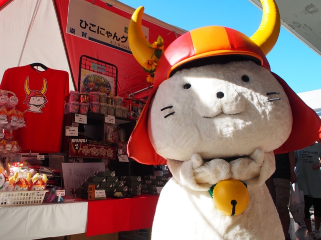 「ひこにゃん」以外にも滋賀県キャラクター「キャッフィー」が参加していたので、2人で仲良くPRを頑張りました。
