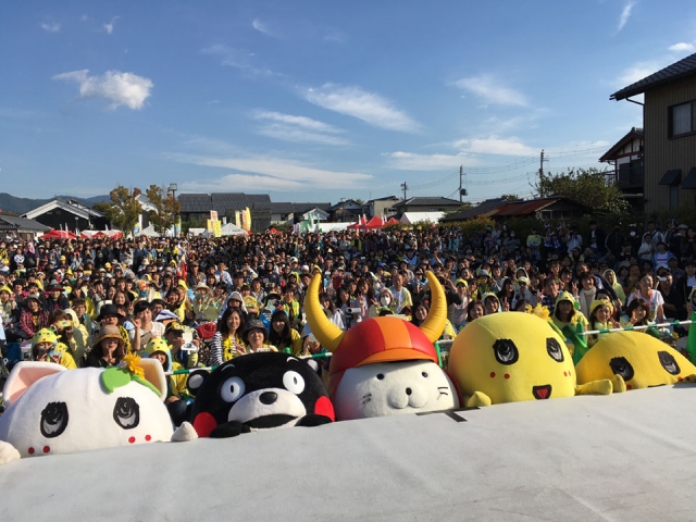 「くまモン」を始めとしたたくさんのキャラさん達と一緒に“エイエイオー”を行い、イベントにかける思いを身体で表現します。
