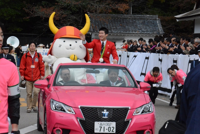 11月3日(木・祝)「ひこねの城まつりパレード」では、彦根市出身陸上の桐生選手と一緒にピンクのオープンカーに乗ってパレードに参戦しました☆