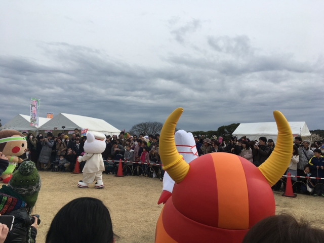 会場の偕楽園では、「みとちゃんお誕生日会」と同時に「梅まつり」も開催されていて、 “白”と“赤”の美しい梅の花が会場内を彩っていました♪