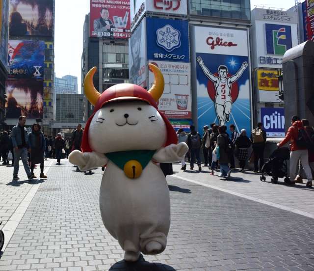 道頓堀のグリコのポーズをするひこにゃん、可愛すぎるーー